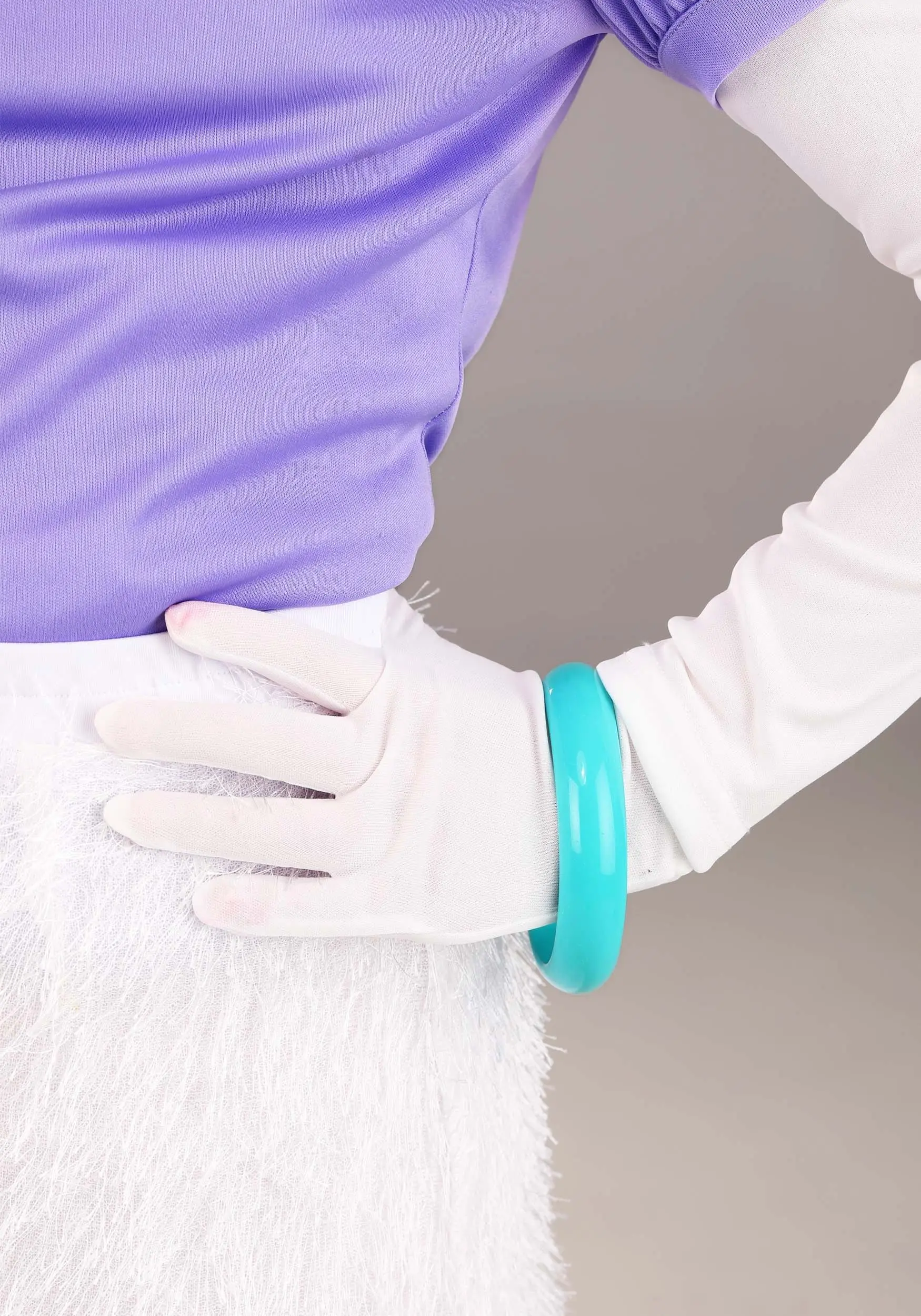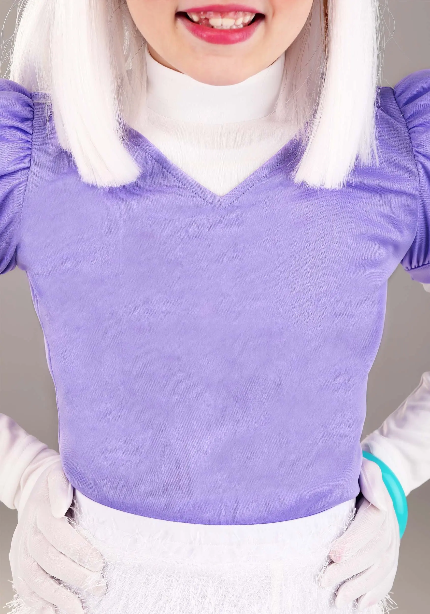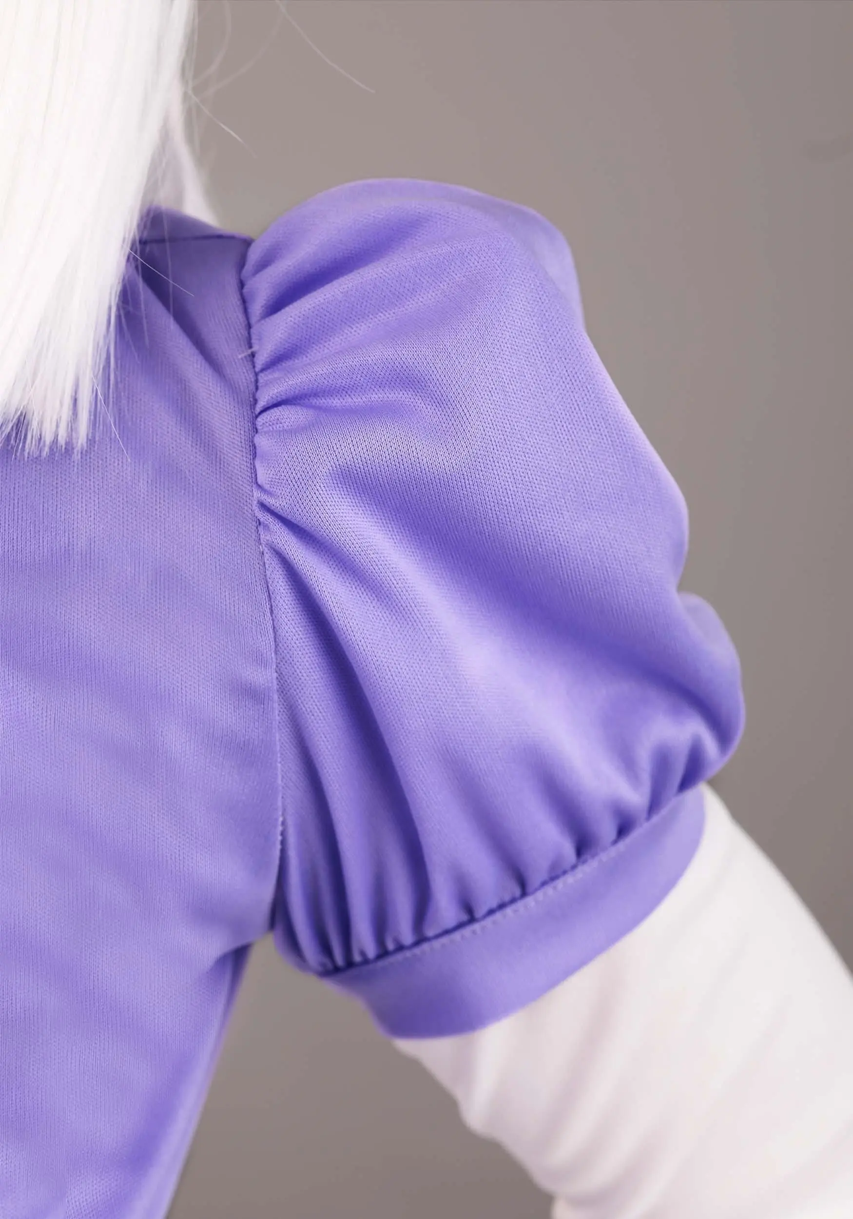 Your child will be ready to flaunt Daisy’s fashion in this Kid’s Disney Daisy Duck costume! Designed and Made By Us, this officially licensed outfit comes with everything they’ll need to be inspired by Daisy’s style. A purple jersey shirt with puffed sleeves is the ensemble’s first piece and includes long white sleeves underneath.