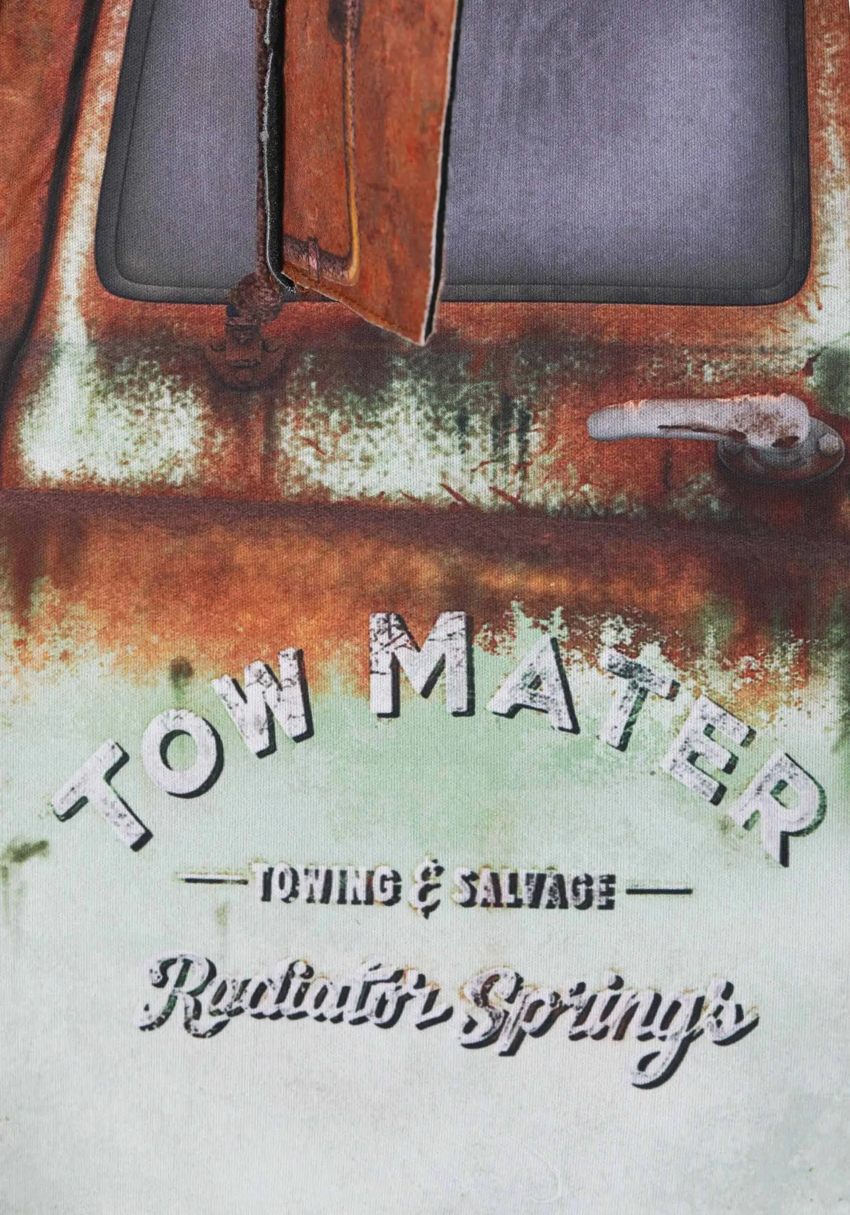 You’ll be happier than a tornado in a trailer park to be wearing this exclusively designed, officially licensed Deluxe Kids Cars Tow Mater Costume! Stiff, sturdy fabric, printed to look like rusty metal, is sewn together into Mater’s well-known tow truck shape, complete with wheels. A tow rope on a pulley sits in Mater’s pickup bed. The incredibly detailed graphics include busted front headlights, windshield with friendly eyes, a missing hood, and big smile showing buck teeth. The sides are printed with the words “Tow Mater Towing and Salvage, Radiator Springs.” Mater’s beloved rearview mirrors stick out the sides of the “cab.” The costume stays in place via a pair of adjustable shoulder straps.Â