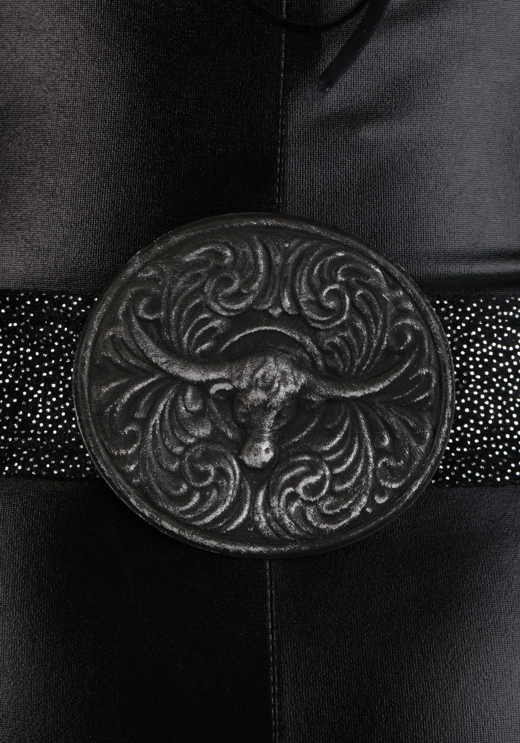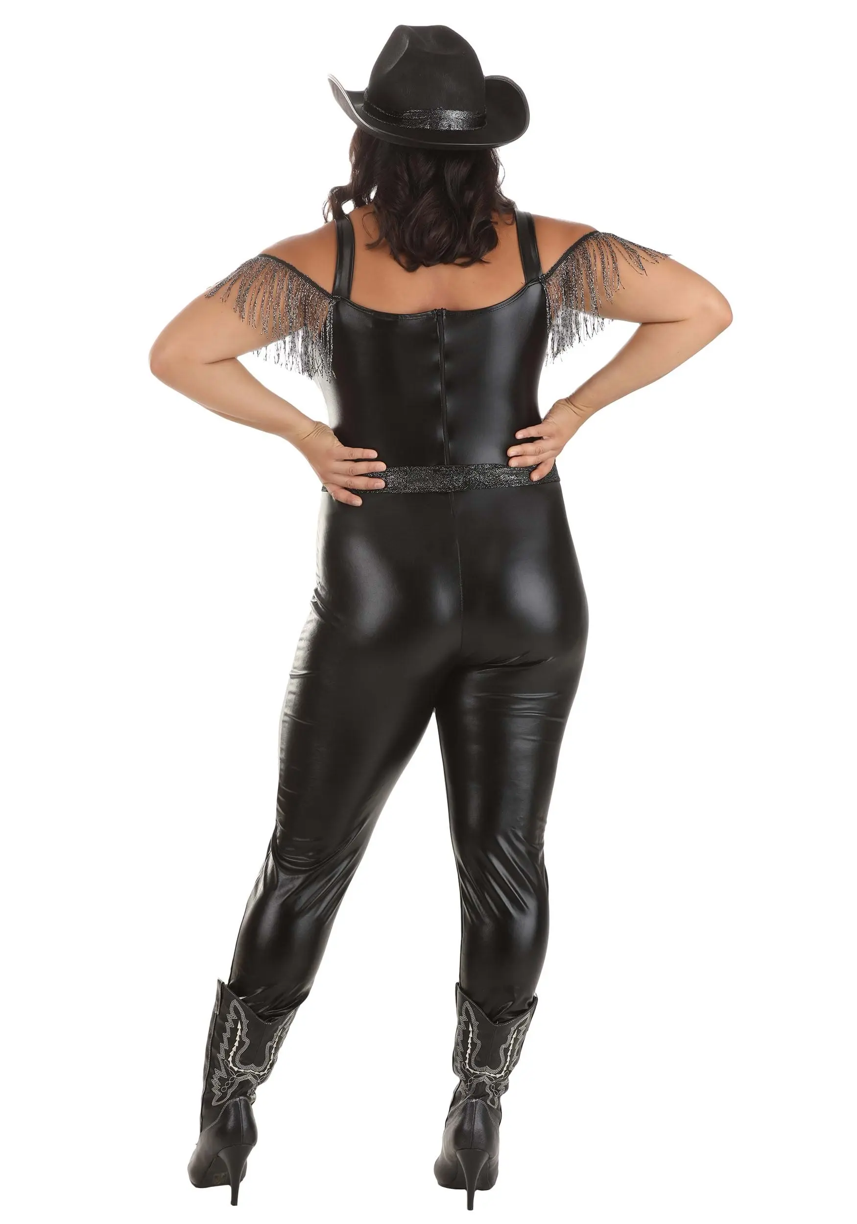 Step into the role of a lifetime when you dig your heels into this Honky Tonk Hottie costume. This brilliant bodysuit has a shiny faux leather finish that will shimmer with every shimmy. Classy fringe forms off-shoulder sleeves, and the metallic knit belt features an inspired Western buckle design, too. The neckerchief really pulls the look together, though you will want to add the cowboy hat and your favorite boots for a stomping good time!