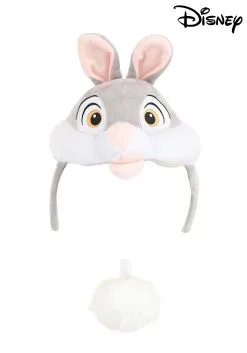 You’ll be twitterpated for this officially licensed Adult Bambi Thumper Soft Headband & Tail Costume Kit! The cloth-covered headband jas an attached face panel shaped like the upper half of Thumper’s head. Its details include embroidered eyes as well as soft-sculpted cheeks, snout and mouth, and two 3D ears lined with pink fabric. The tail is an oversized white pom-pom made of faux fur.