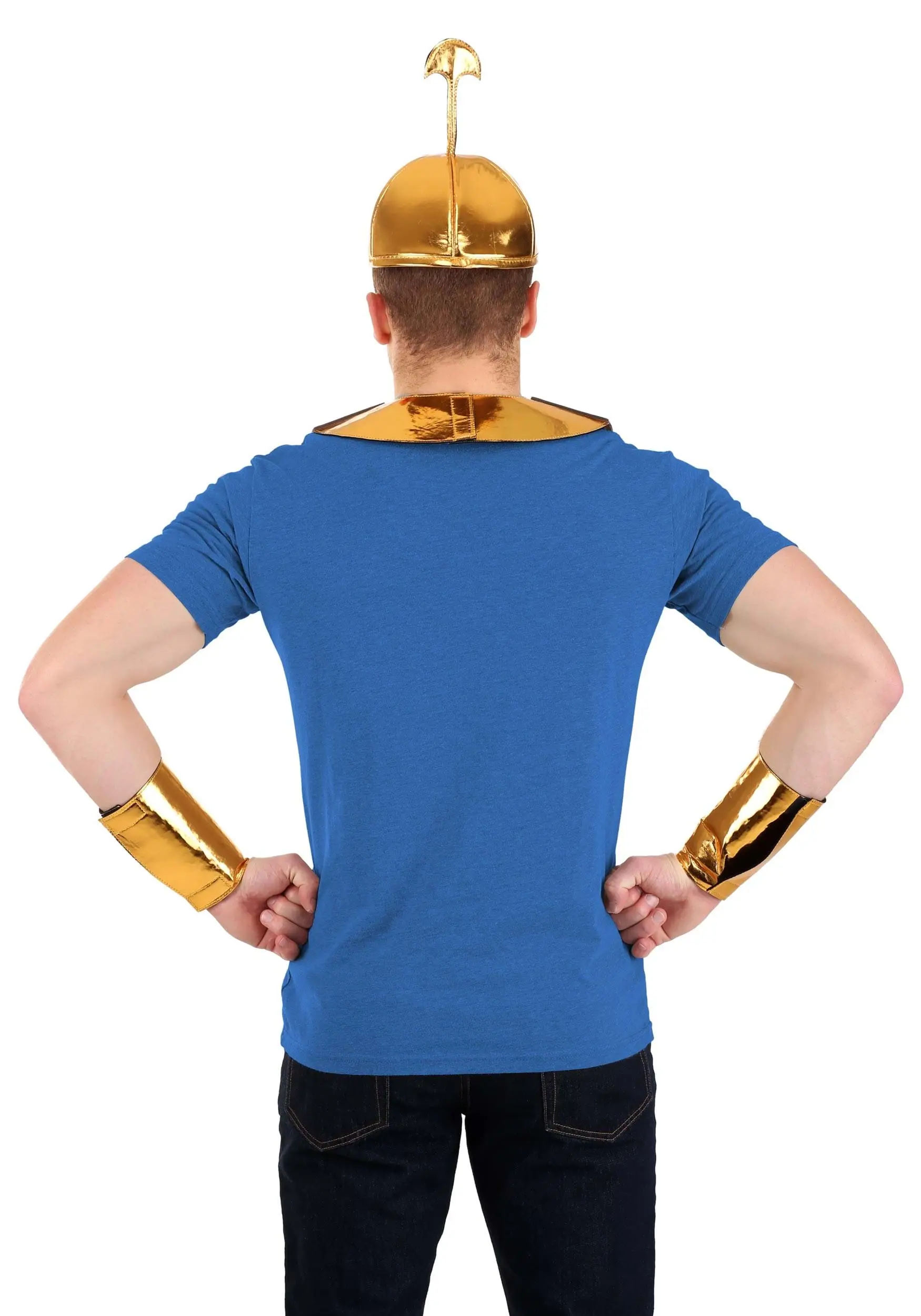 Help Kronk get what he deserves by becoming the loveable lug with this Emperor’s New Groove Kronk Hat Collar and Cuffs Kit. Dressed as the gentle giant, you’ll be ready to commune with nature and host a rockin’ dinner party. And you won’t need to worry about getting your costume dirty! The metallic gold fabric accessories are perfect for layering over your clothes. So, whether you’re dressed to cook or to trick-or-treat, you’ll be able to keep the gilded look that’s as shiny as Kronk’s winning personality!