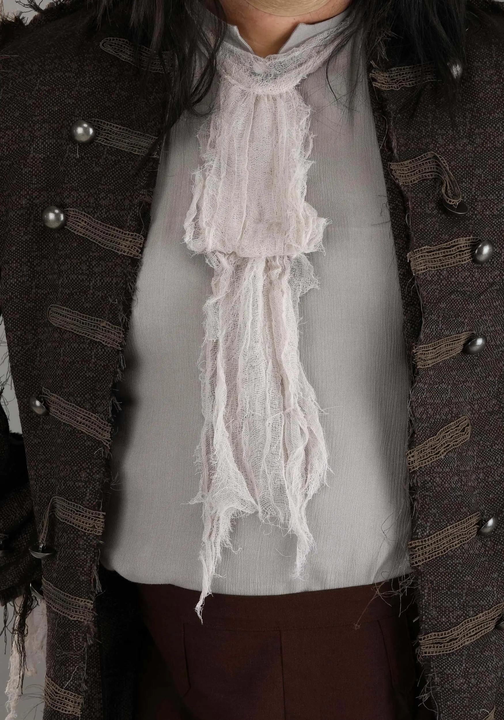 - Sleeve cuffs have tattered cheesecloth drapes
