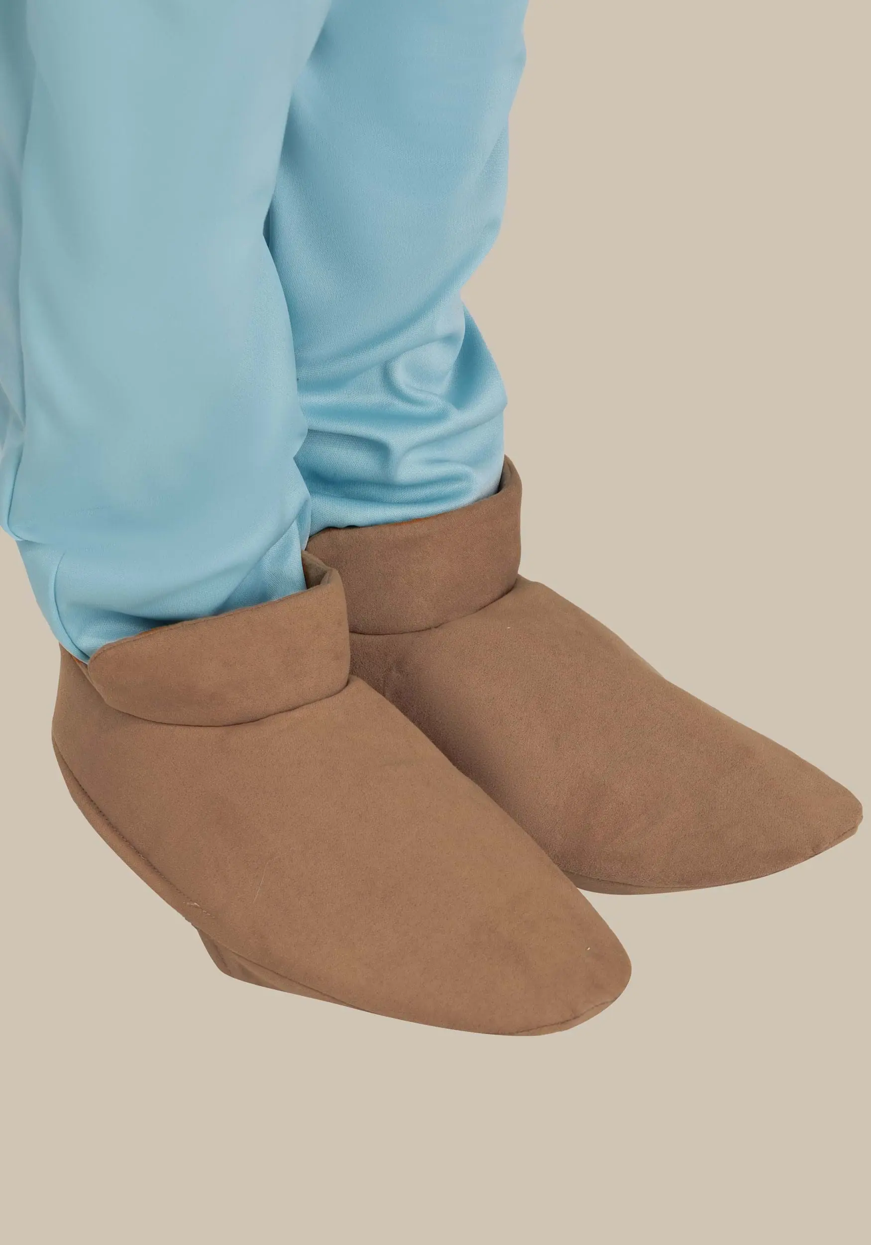 - Pair of faux suede foam foot covers w/ elastic bands to secure under feet