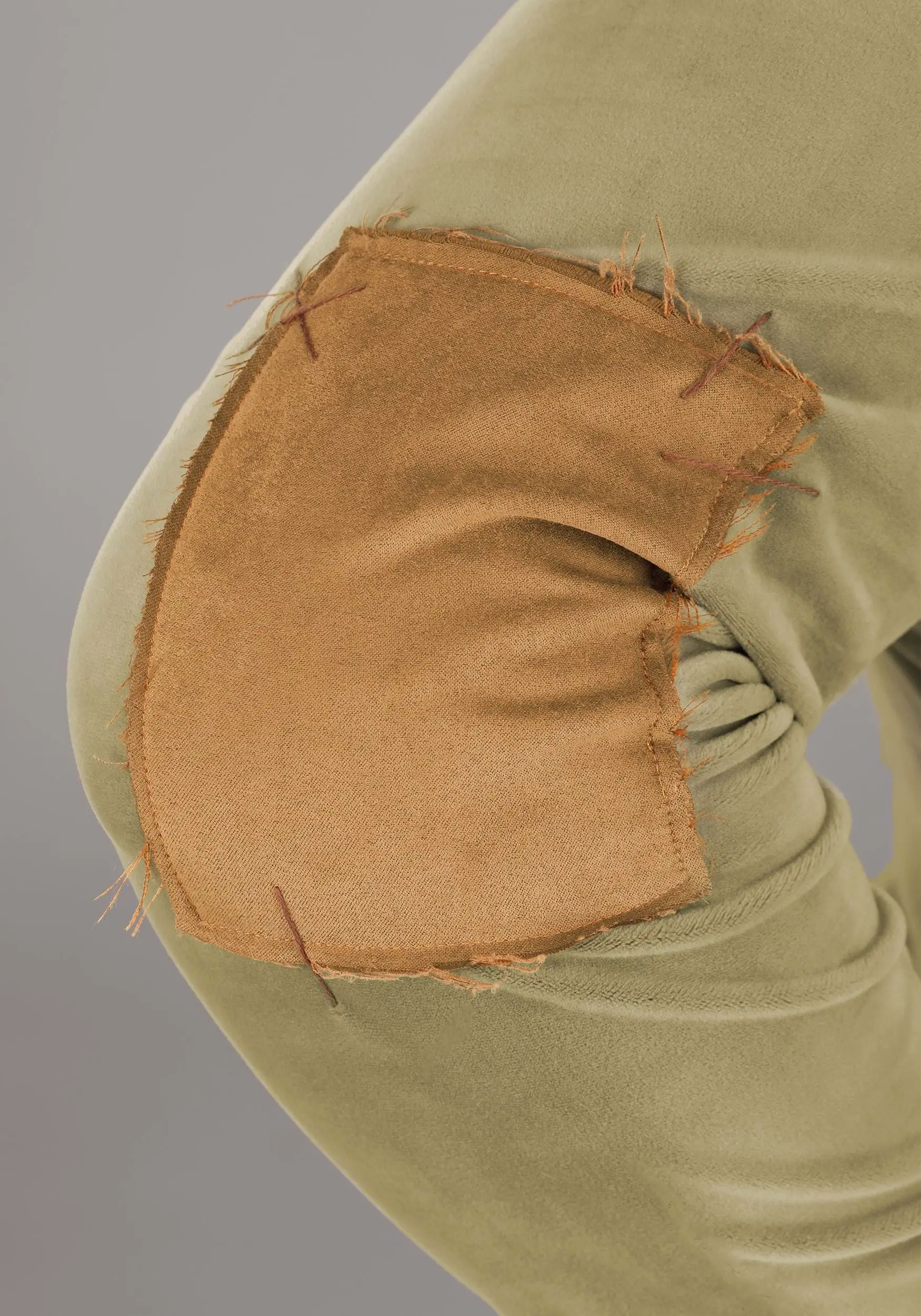 - Cuddle plush shirt has snap button closure on the back, faux suede patches, felt buttons