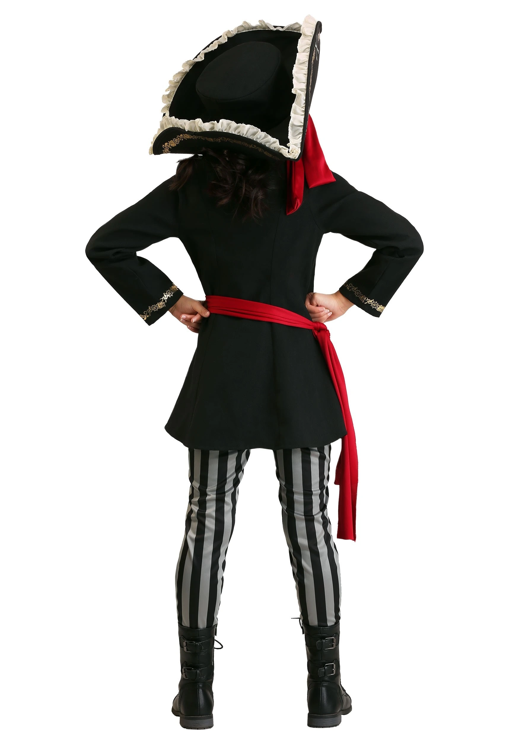 Your treasure savvy kiddo will love rocking this tough pirate costume! As this costume is Made by Us, the style stands out while the costume’s high-quality lets your kid play pretend in this costume after trick-or-treating is over. It features a long pirate jacket that has a unique nautical trim and Jolly Rogers on the front. A lace-up shirt tucks into the high-waisted silky vertically striped pants. The look is cinched in with a red sash and is topped off with a dramatic captain’s brim and a red scarf. Pair this costume with tall boots to make your kid’s look complete.
