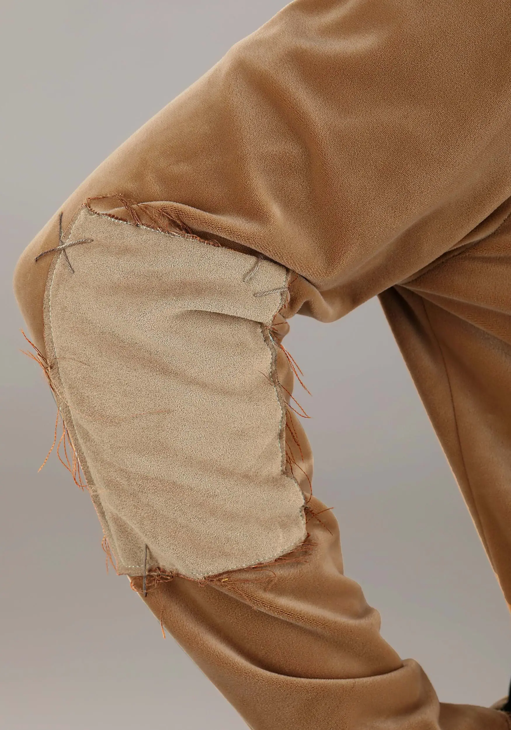 This look is a bit of Made By Us magic that was inspired from the classic Disney film and will have you in a pair rich orange, elastic pants and a matching tunic with oversized buttons, elbow patches, and a black velvet belt to cinch everything together! Top off the look with the Dwarf Hat and attached white beard. (Just keep a kerchief along with you in case you get really into character.)