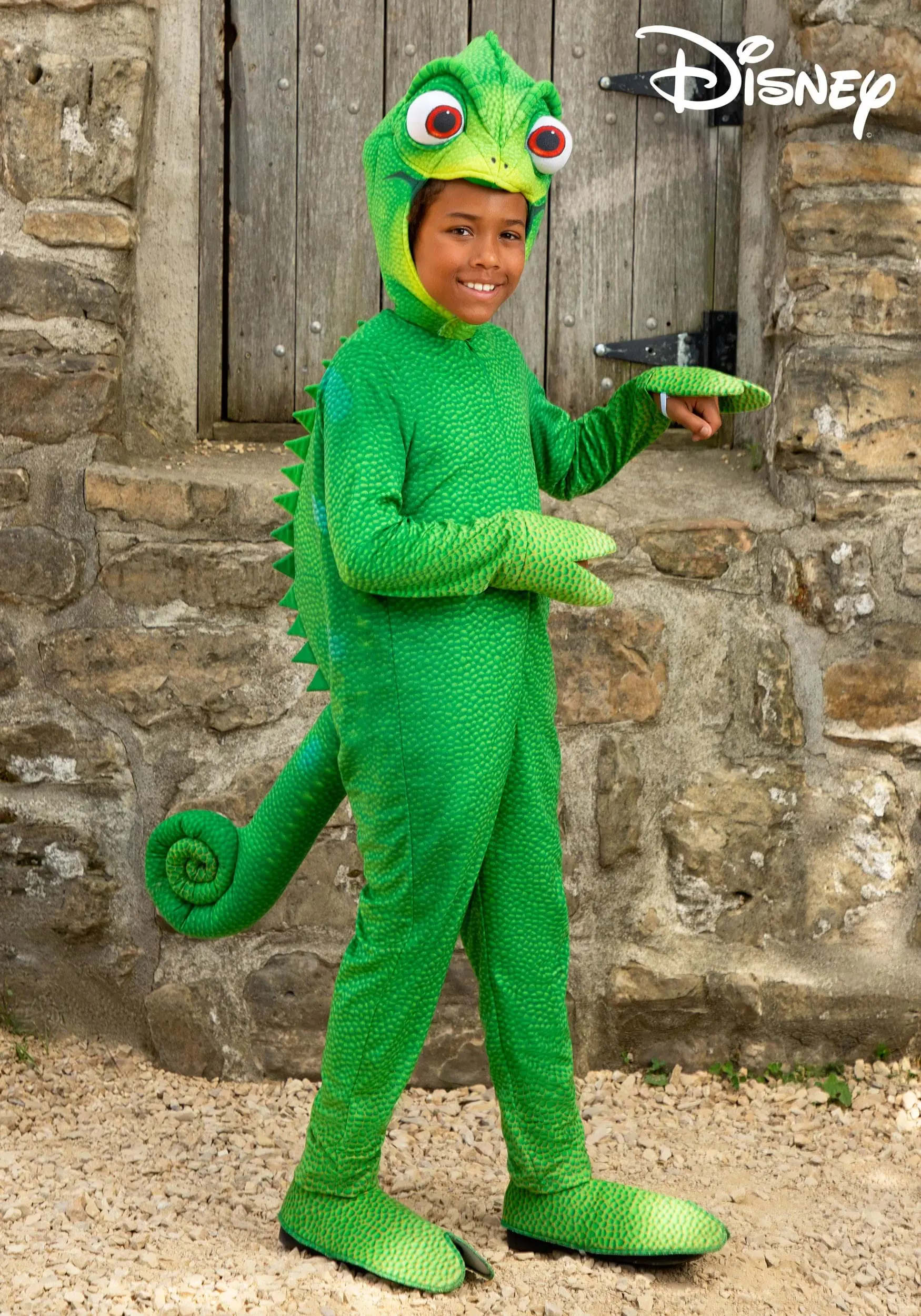 This officially licensed Disney Tangled Pascal Kid Costume is perfect for any Disney fan. Suit up your child in the green jumpsuit that is printed to keep to Pascal’s standard style. The jumpsuit zips up the front and features a stuffed tail and chameleon fins on the back. Foot covers transform their feet into the two-toed chameleon look and the headpiece features his famous face to complete your kiddo’s costume. Bring their Disney dreams to life in true Tangled style!
