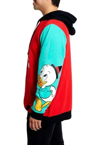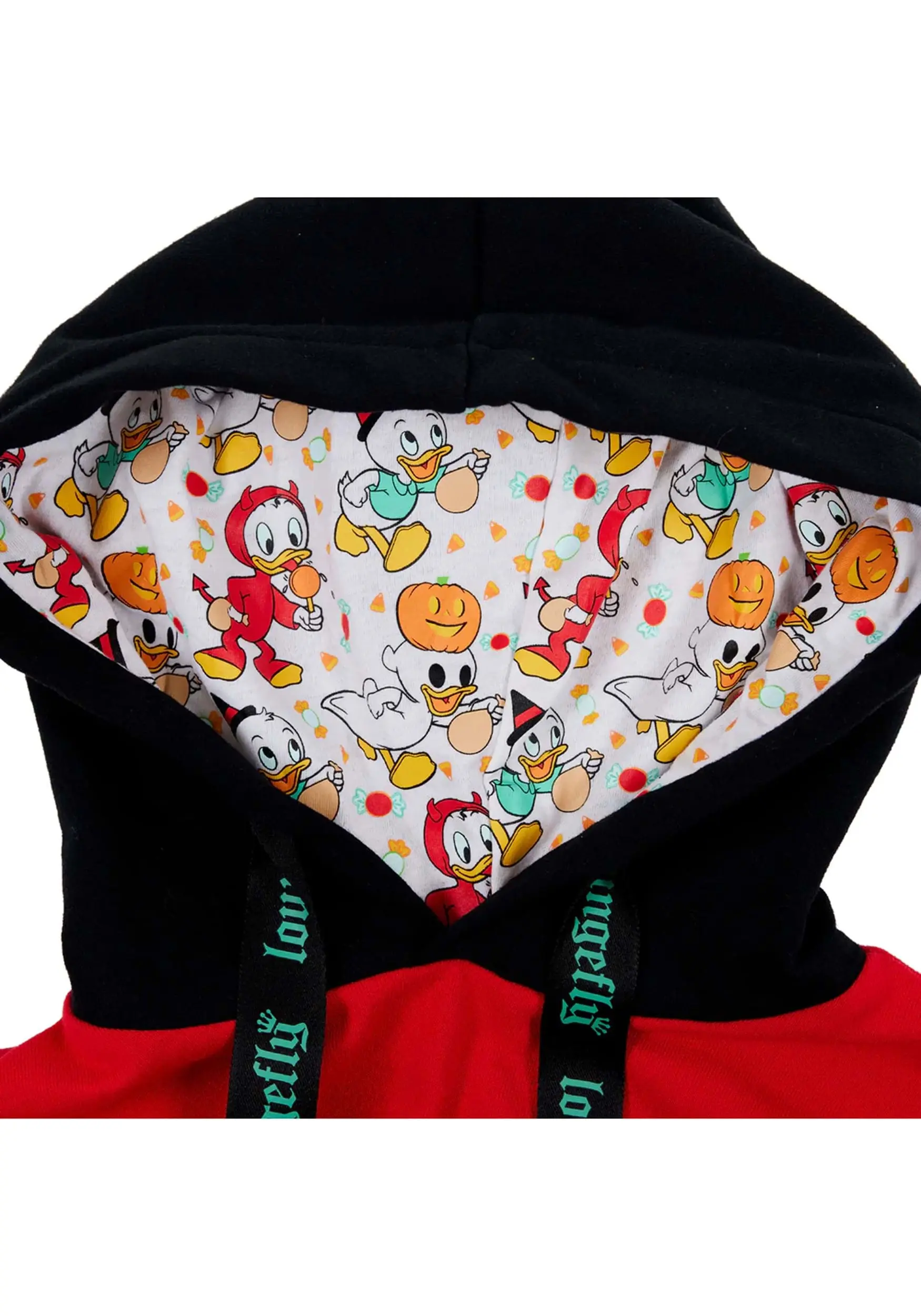 Sure, one Halloween costume is pretty cool. But what about three? Uncle Scrooge’s favorite nephews are dressed to go out trick-or-treating on this super comfortable Loungefly Disney Huey, Dewey, and Louie Halloween Hoodie. Each triplet gets his own color block that coordinates with his costume theme. The lined hood has an extra large drawstring cord that you’ll never lose. The kangaroo pocket on the front is big enough to fit both your hands (or all your Halloween candy!) It’s a casual, loose fit that Duck Tales fans of any age, size, or gender can enjoy.