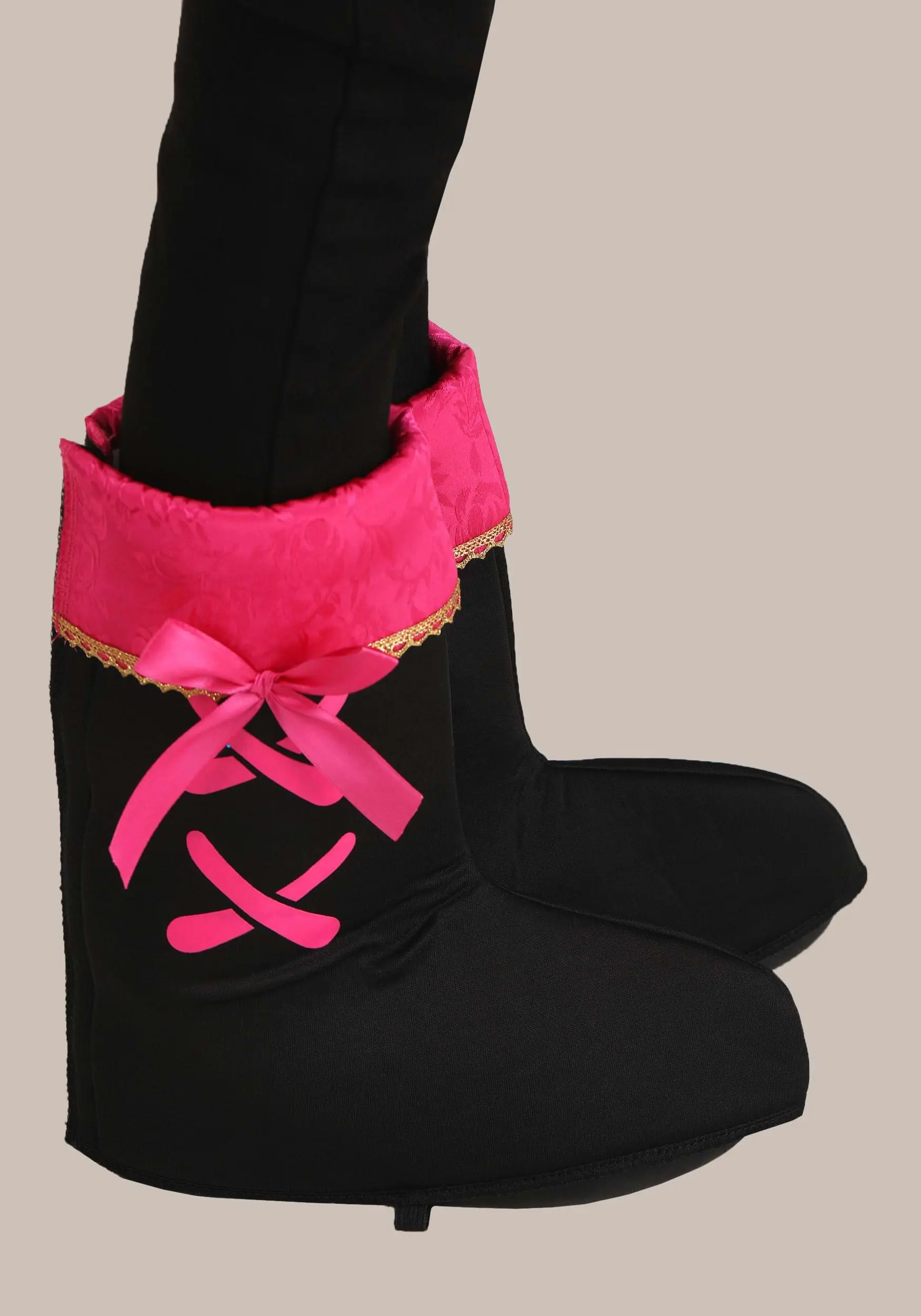 Shiver me timbers! This may be the most incredible pirate costume we’ve ever seen. Made exclusively by our in-house designers, this look comprises incredible details fit for only the most feared and revered pirates. It includes the stunning deep pink brocade jacket complete with gold buttons, dramatic cuffs, and an attached belt. The boot covers bring in the same deep pink hue and make your kid’s footwear appear instantly seaworthy. The shirt is a black background printed with golden pirate skulls, as well as a frilly white collar. Add the tricorn hat — a pirate staple — and your little scallywag is ready for the high seas…or at least an amazing night of trick or treating!