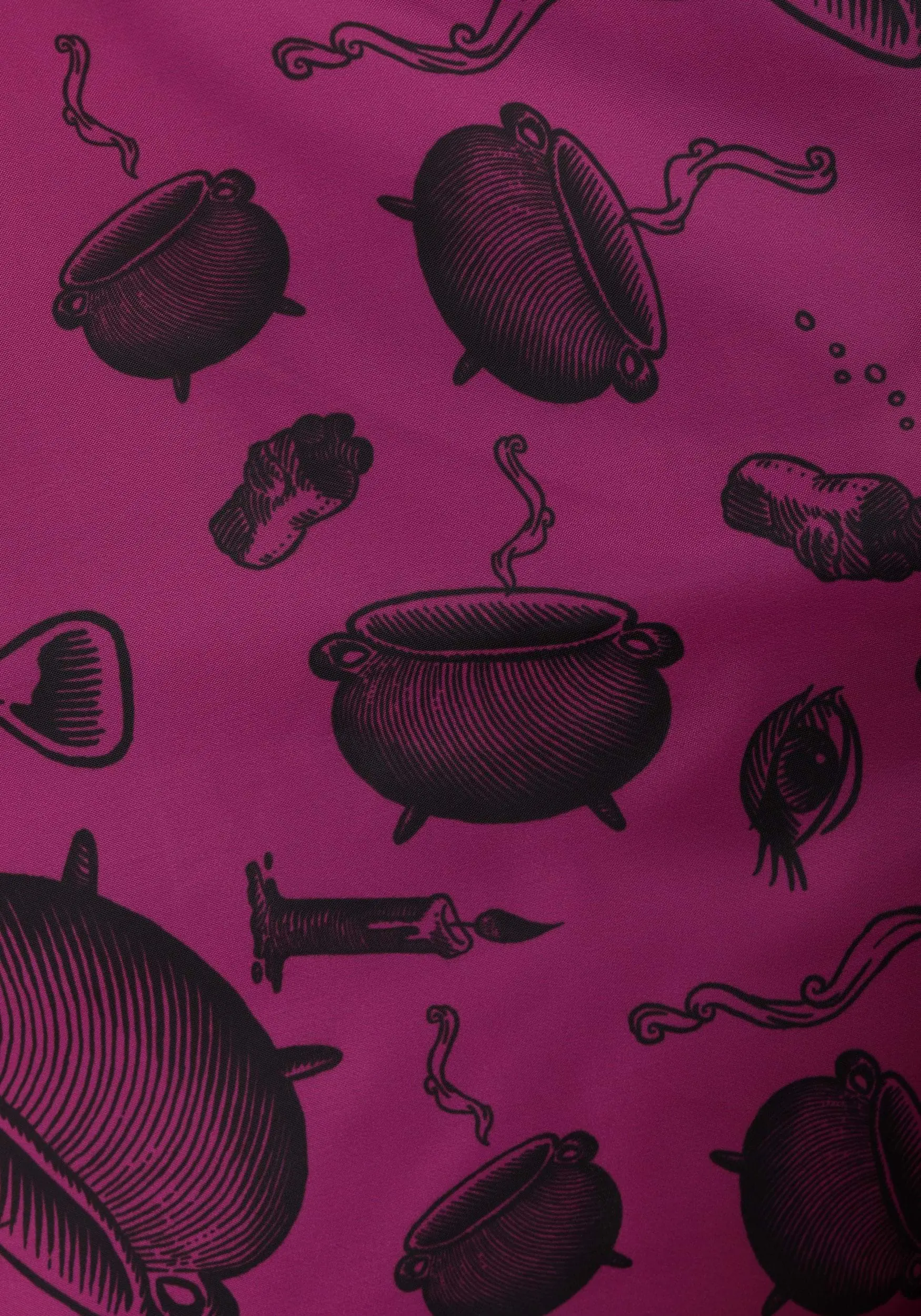 The maroon cape ties around your neck and falls over your shoulders to about your waist. The oversized hood creates a perfect Sanderson silhouette and features Mary’s name embroidered on the side and an inner nylon lining with witchy graphic details! It is the perfect addition to any Hocus Pocus costume or simply for flying around town!