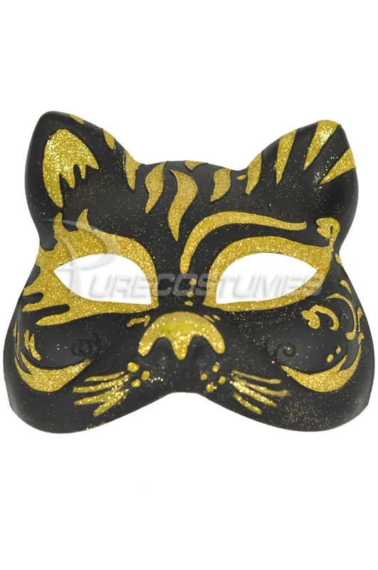 Tiger Colombina Mask (Black/Gold) is the purrfect way to get playful at your next masquerade event. This frisky mask is decorated with glittered gold stripes to making this a real attention-getter.