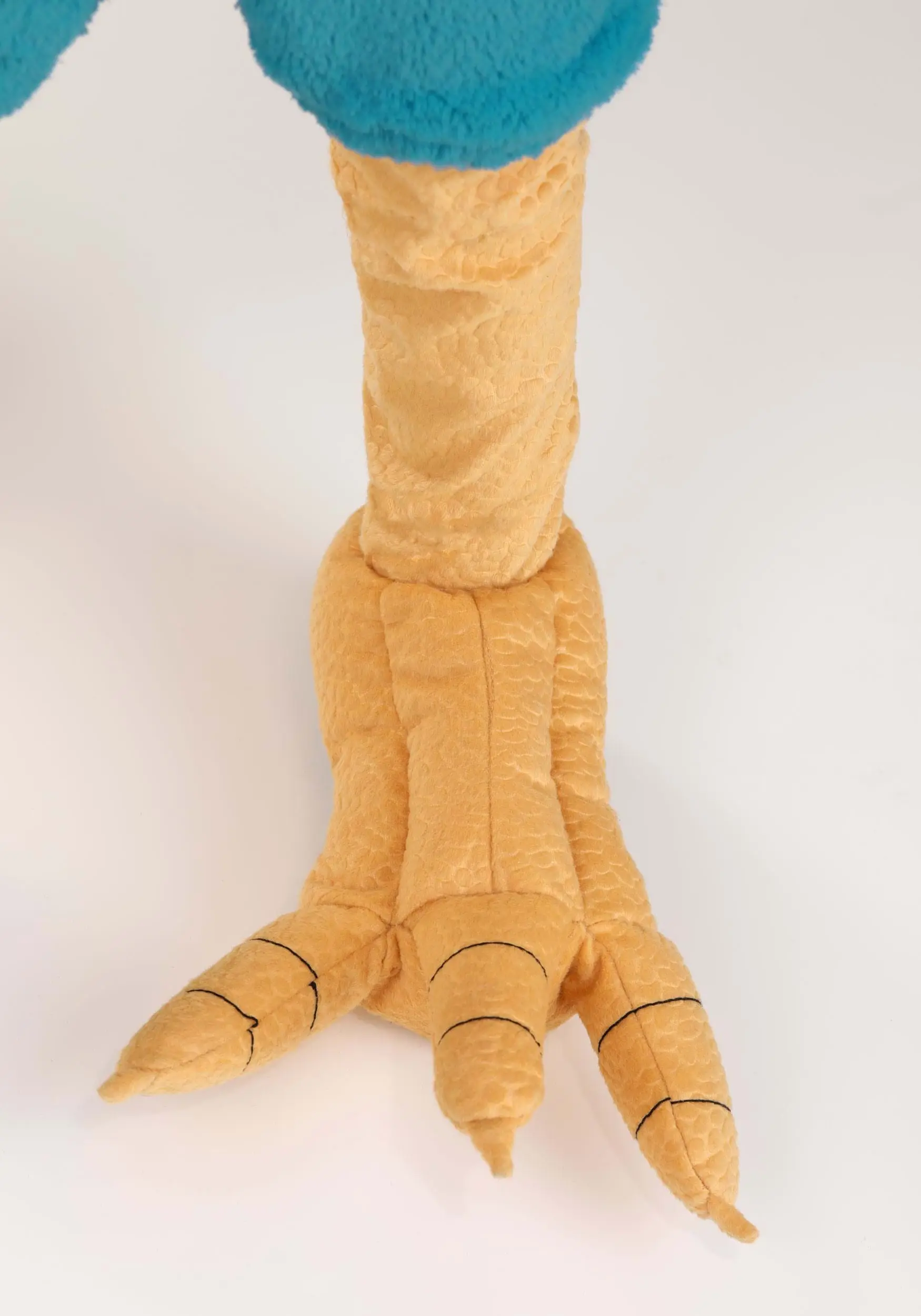 The outfit starts with a blue bodysuit that has layers of fabric imitating feathers. A zipper down the front helps make changes easy, and elastic at the bottom of the legs keep it secure. The soft red hood gives your kiddo Hei Hei’s goofy eyes and beak. Shoe covers give your little one chicken legs, which complete the whole look!